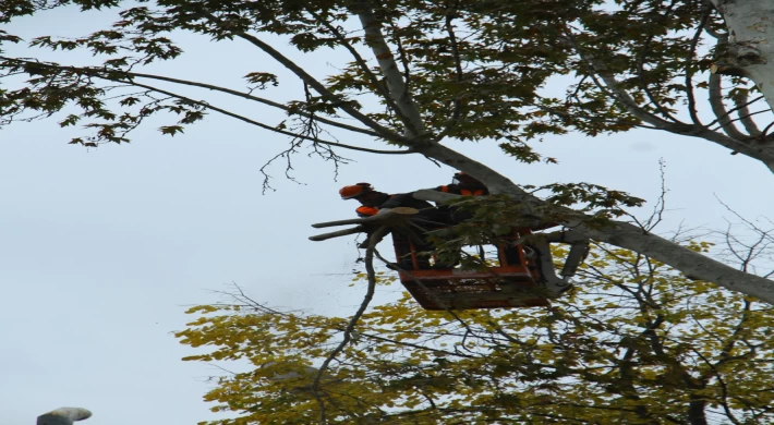 Ağaçlardan kesilen büyük dallar, yerde görevli olan ekipler tarafından daha küçük parçalara bölündü. Devrilme ve diğer binalara zarar verme olasılığı bulunan büyük dallar ise yine görevli ekipler tarafından budanarak ağaçların ömrü uzatıldı.