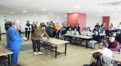 Sahilde basketbol oynayan çocukların yanına giden Ekşi, oyunlarına dahil oldu. Başarılı atışlarıyla dikkat çeken Kadem Başkan’ın gençlerle diyaloğu, renkli görüntüler oluşturdu. Kendisinin de gençlik yıllarında futbol oynadığını söyleyen Ekşi, gençlerle hatıra fotoğrafı çektirdi.
